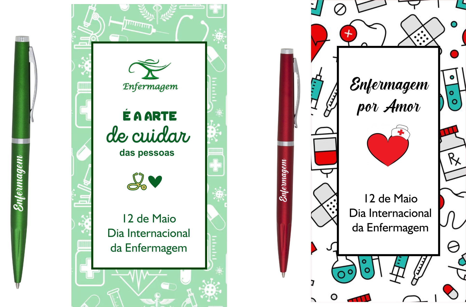 Caneta + cartela +embalagem com mensagem Enfermagem