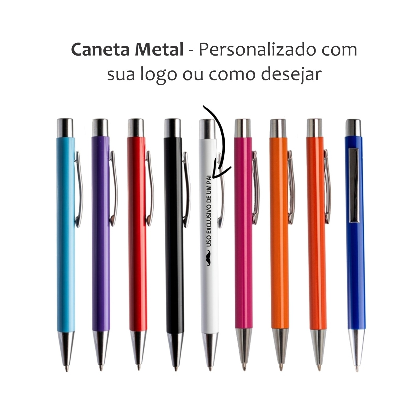 Descrição: Essa caneta metálica é perfeita para tornar as anotações do dia a dia mais eficientes. Com acionamento por clique e carga esferográfica azul de 1.0mm, ela garante uma escrita suave e confortável em qualquer ocasião.