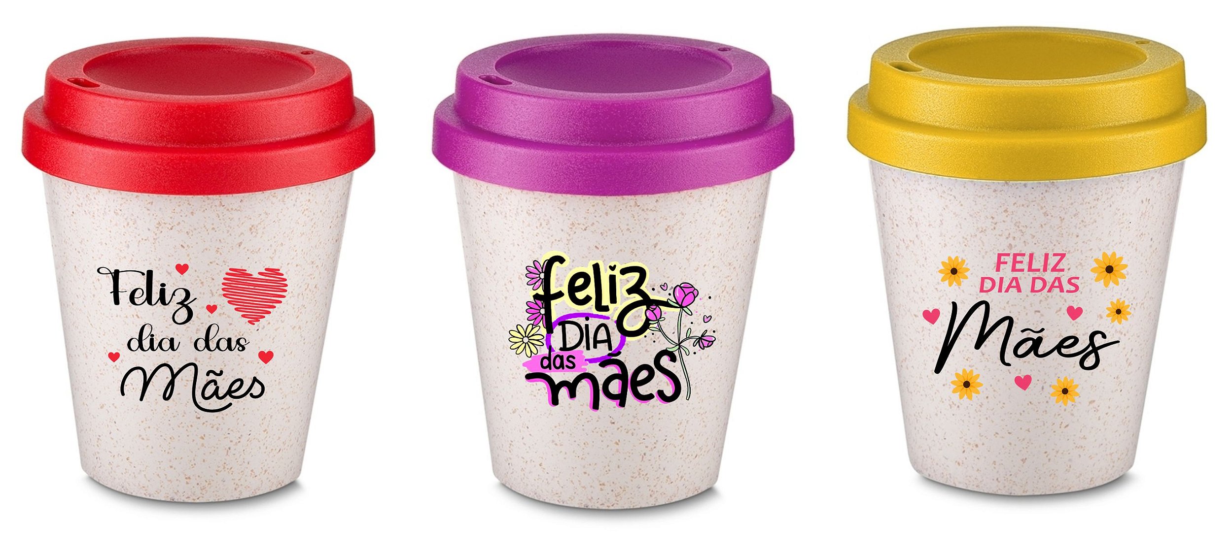 Copo em fibra de arroz biodegradável com capacidade para até 350ml e tampa plástica rosqueável.