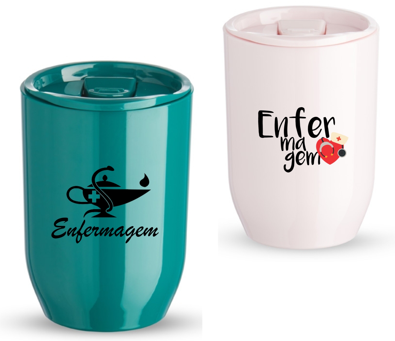 Descrição: Copo plástico 350ml com tampa de pressão. Tampa com acesso e trava de segurança para o bocal.