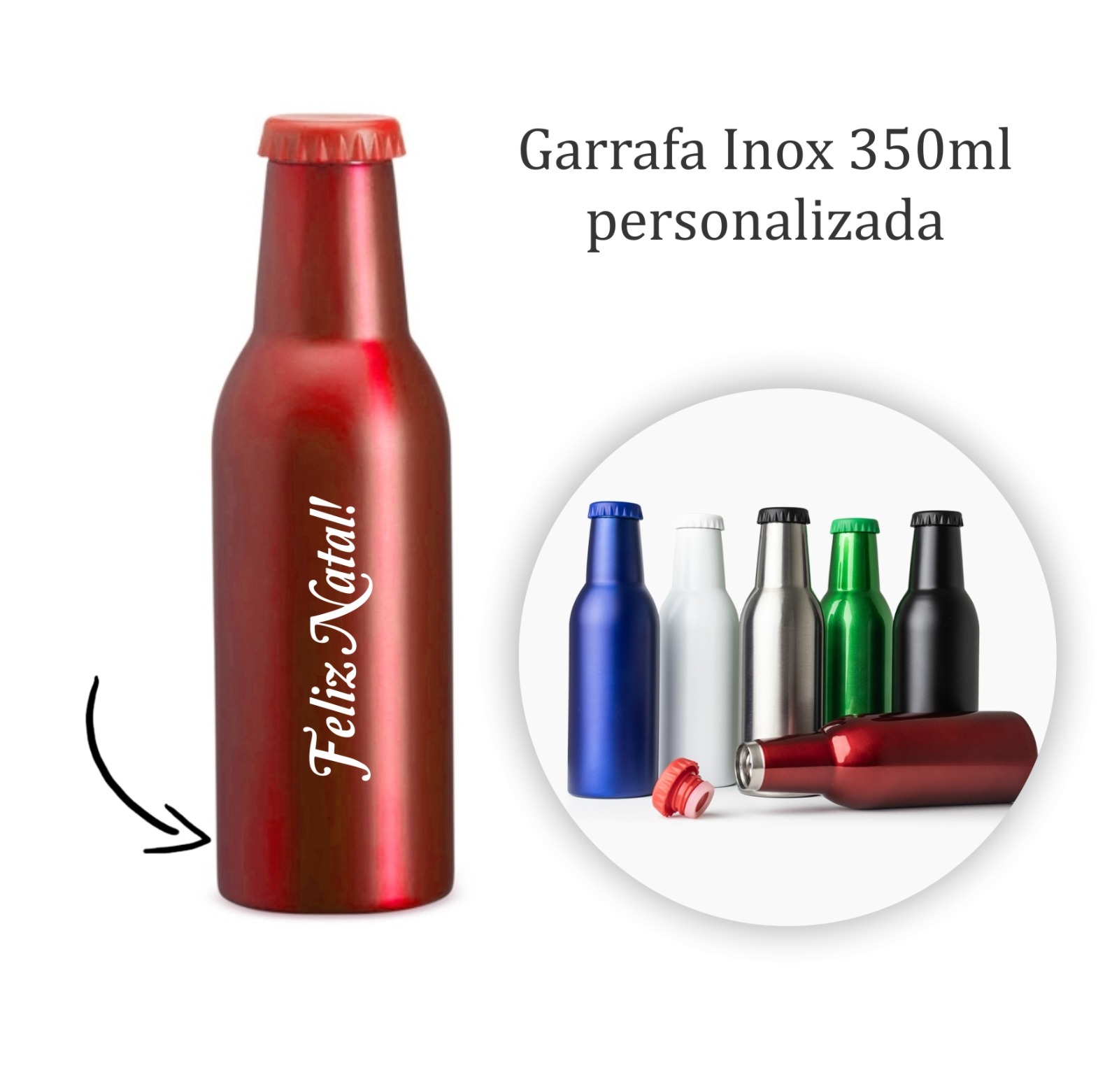 Descrição: Garrafa térmica 350ml em inox com tampa rosqueável e acabamento fosco.