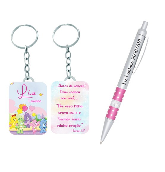 Chaveiro com caneta Ursinhos Carinhosos Personalizado