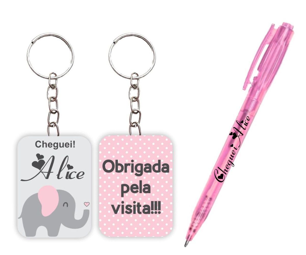 Kit Chaveiro + Caneta Especial Elefantinho azul e cinza