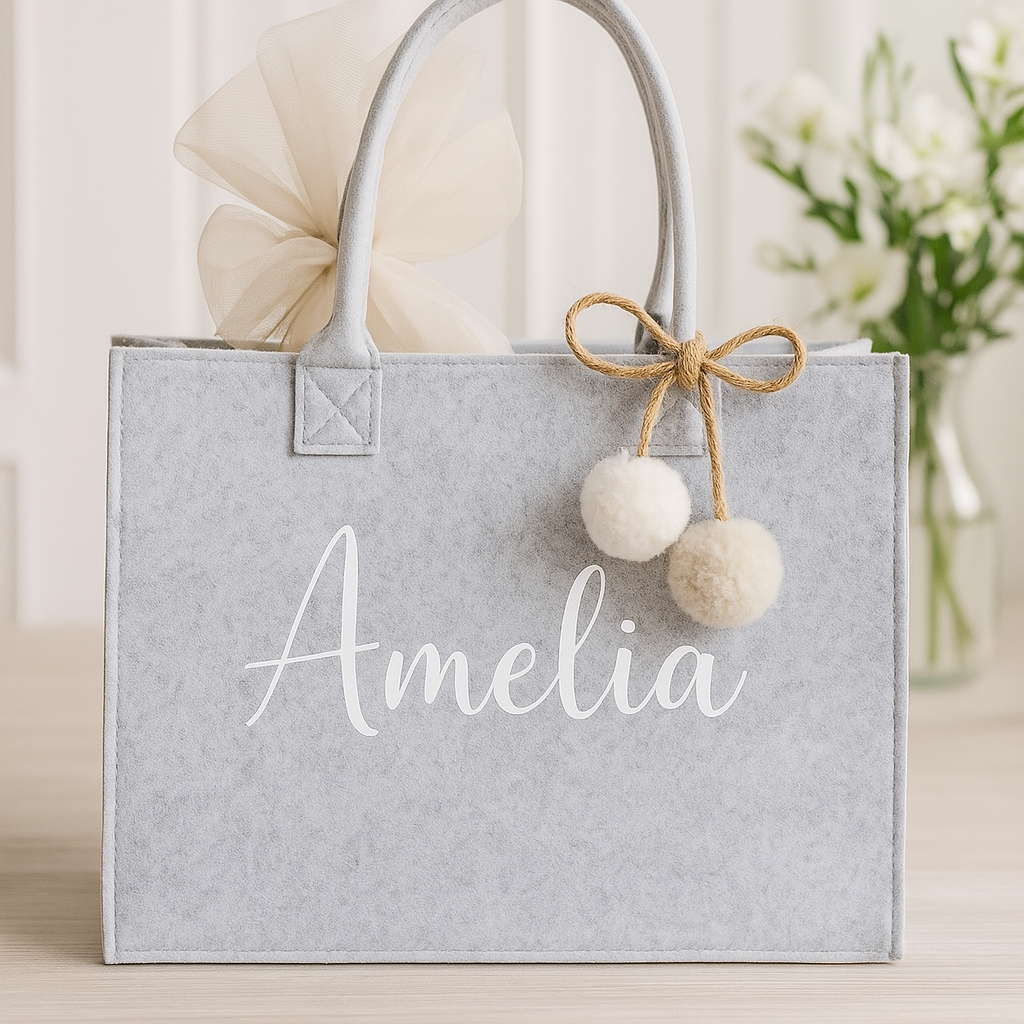 Descrição: Sacola feita de feltro, trazendo o conforto ideal para acomodar cada um dos seus itens, com um ótimo espaço interno e alças para transporte costuradas internamente.
