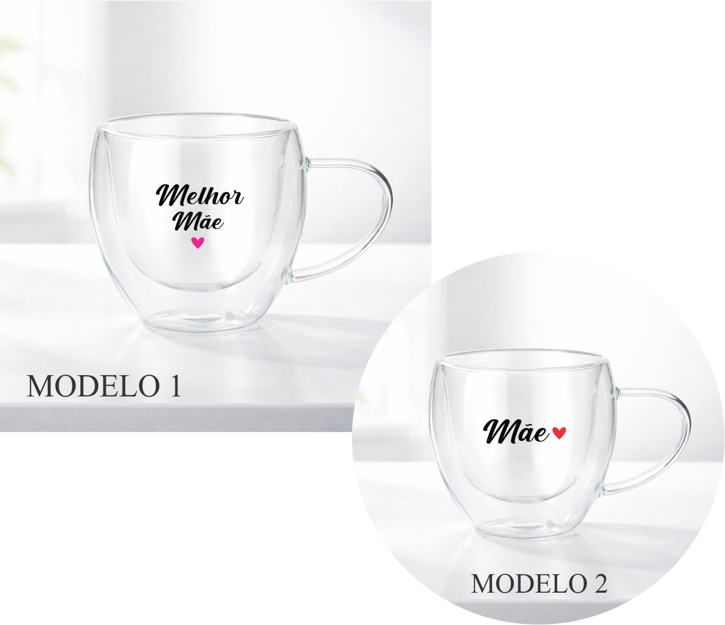 Xícara em vidro borossilicato com capacidade para até 160ml e estrutura de parede dupla, que impede que o calor alcance a parede externa.